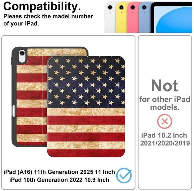 ![Alt view image 4 of 5 - Supveco Case for iPad (A16) 11th Generation 11 inch (2025),iPad 10th Generation 10.9 inch (2022) with Pencil Holder-[Auto Wake/Sleep],Premium Folio Stand Case with Soft TPU Back Cover-Flag](https://c1.neweggimages.com/productimage/nb640/C2GMS2512080CHJQC39.jpg)