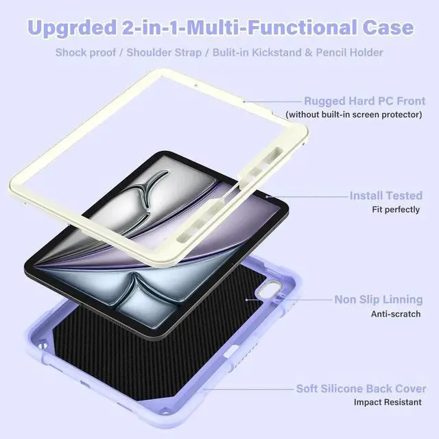 Compatible with Apple iPad Air M2 2024 11 inch. You can find the Model Number on the back of iPad. (The case for ipad air m2 case without built-in screen protector, for Apple Pencil is not included )