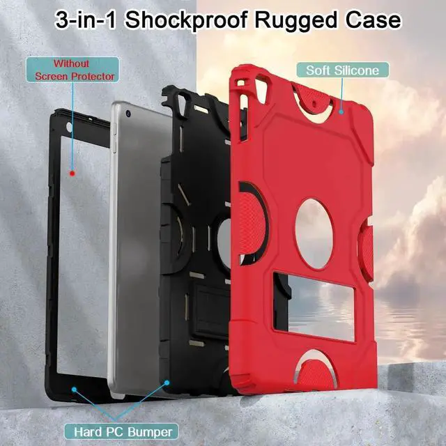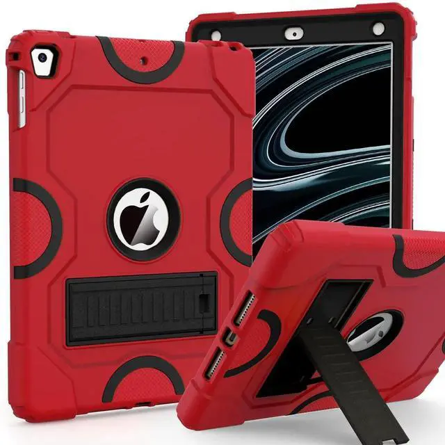 ZoneFoker Case for iPad 6th/5th Generation ( 9.7 Inch, 2018/2017 Model), iPad Air 2 / 1st Case, iPad Pro 9.7 Case 2016, Heavy Duty Shockproof Rugged Protective Case for iPad 9.7 Inch, Red+Black