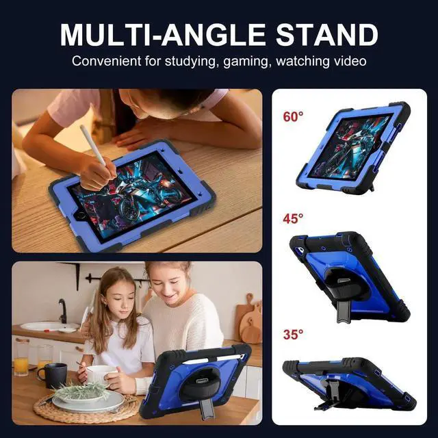 Case for iPad 6th Generation 9.7 inch 2018, iPad 5th Gen 2017, iPad Air 2/ iPad Pro 9.7C ase with Cute Key Chain, Full Body Protective Case with 360°Rotating Kickstand & Shoulder Hand Strap & Pencil Holder for for iPad 6th/5th/ Air 2/ Pro 9.7