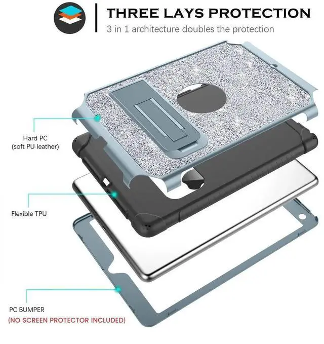 Its Titanium Blue glitter back cover is a smooth, making it easier to put into/get out, and it doesn't catch on the fabric of clothes or handbags, keeping a nice looking for your tablet.