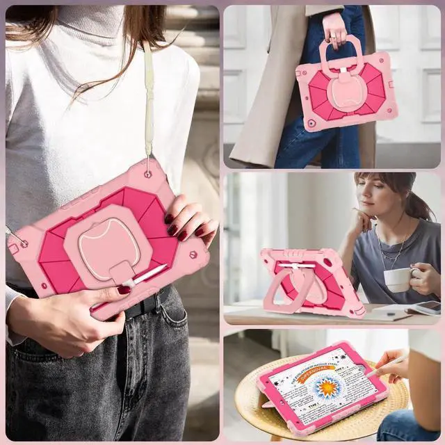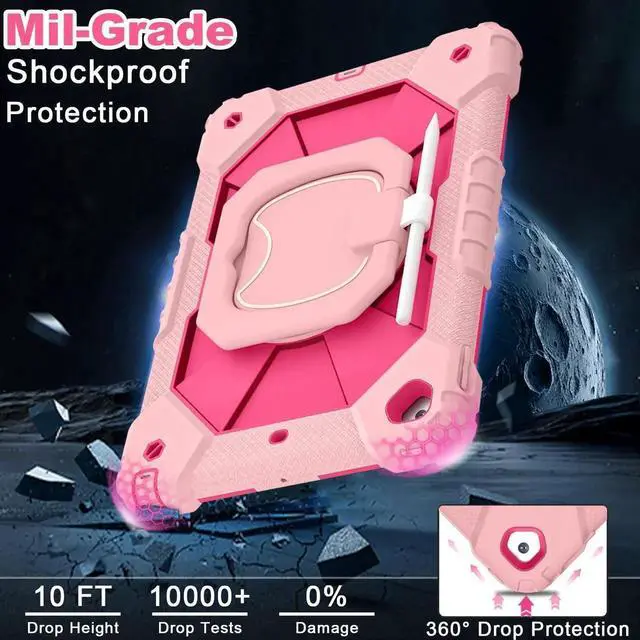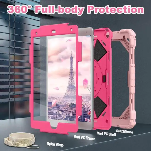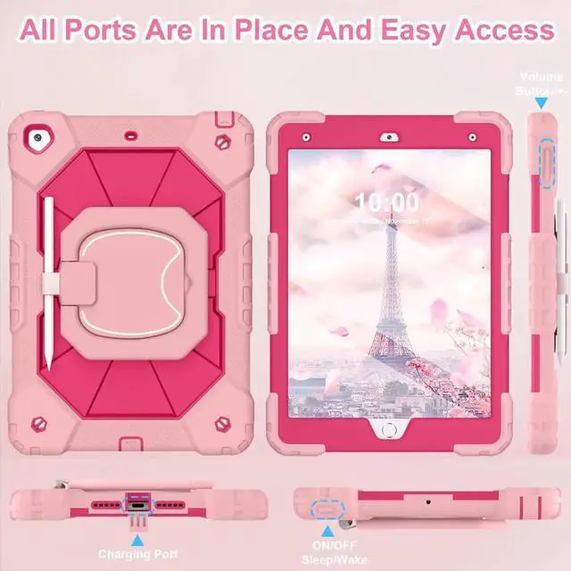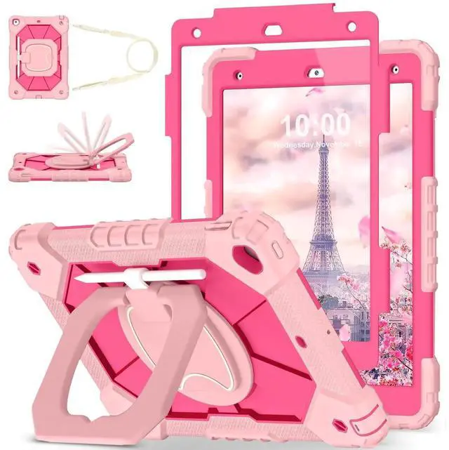 WESOROL Case for iPad 9th/8th/7th Generation 10.2 Inch iPad 9th Generation Case with Screen Protector Rotating Stand Pencil Holder Heavy Duty Shockproof Cover for 9th Gen iPad Case Kids, Rose Gold Pink