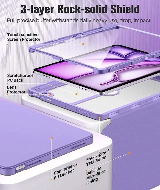 ![Alt view image 4 of 5 - MoKo for iPad Air 13 Inch Case M3 2025 & M2 2024 with Pencil Holder, iPad Air 13 Case [Built-in Screen Protector] with Clear Back & Magnetic Multi Angle Stand Cover, Purple](https://c1.neweggimages.com/productimage/nb640/C2GMS25120903TANP37.jpg)