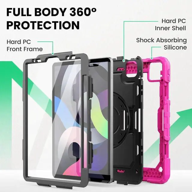 Full Protection: 3-layer front-and-back protective case protects your Air 5th/4th Generation against drops, scratches, shocks and scuffs; hard internal shell, soft silicone exterior and built-in screen protector deflect everyday action and accidents.