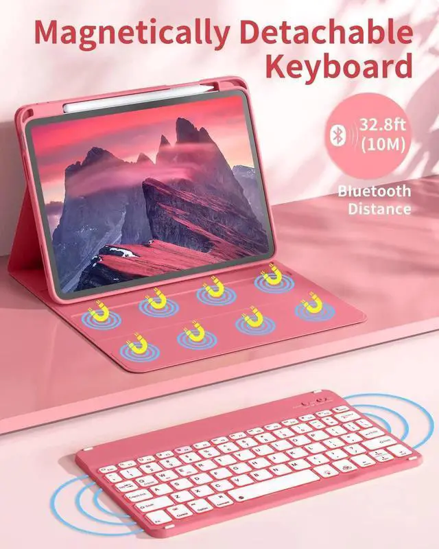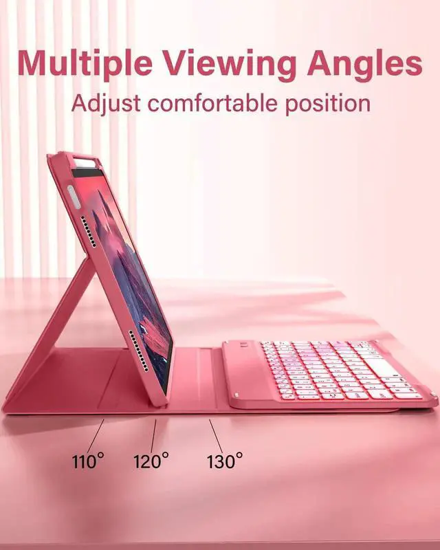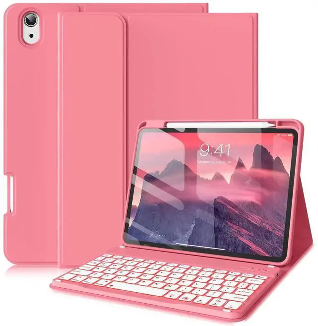 ZKTUYU for iPad (A16) 11th 10th Generation Case with Keyboard - 7 Colors Backlit Wireless Detachable Folio Keyboard Cover with Pencil Holder for iPad 11/ 10.9 inch 2025/2022 (3-Pink)