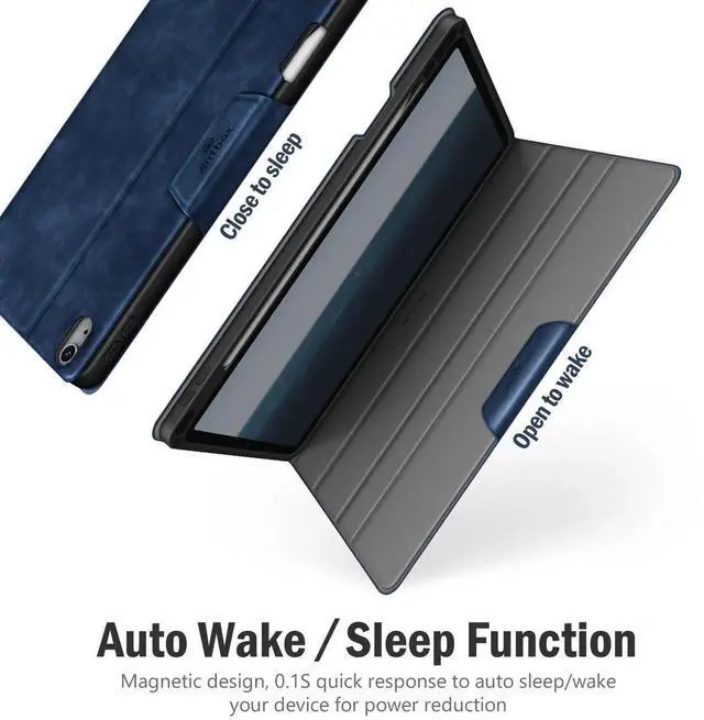 Antbox Case for iPad Air 11-inch M3 (2025) / M2 (2024), iPad Air 5th/4th Generation 10.9 '' Vegan Leather with Pencil Holder Typing Angle Auto Sleep/Wake Muti-Stand (Blue)
