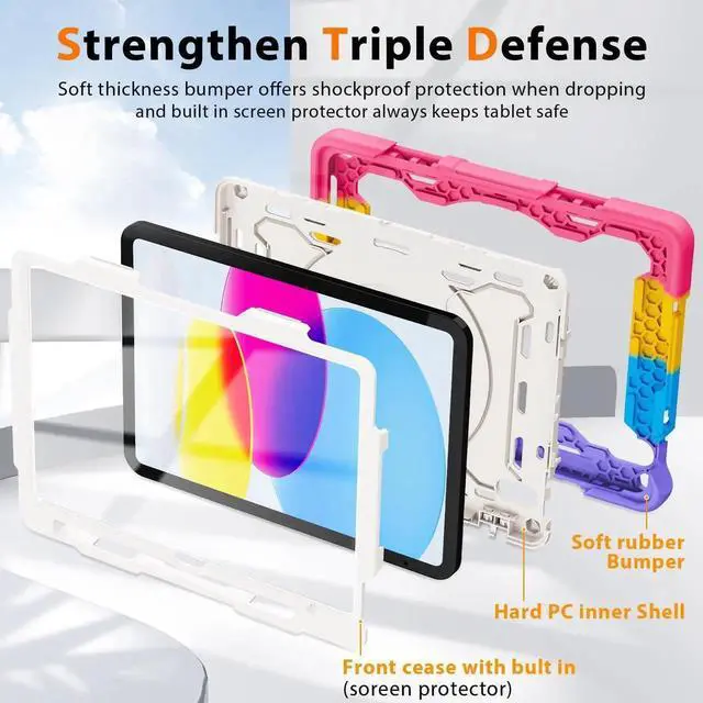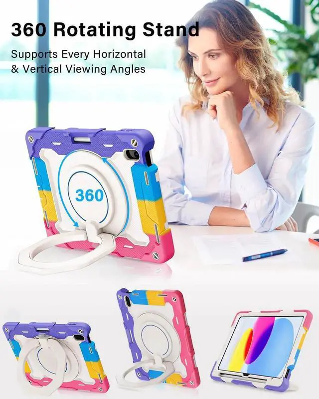 ROISKIN Case for iPad A16 11th Generation 11 Inch 2025, iPad 10th Generation Case 10.9" for Kids with Screen Protector, 360 Kickstand & Handle, Pen Holder, Shoulder Strap, Heavy Duty Drop Protection