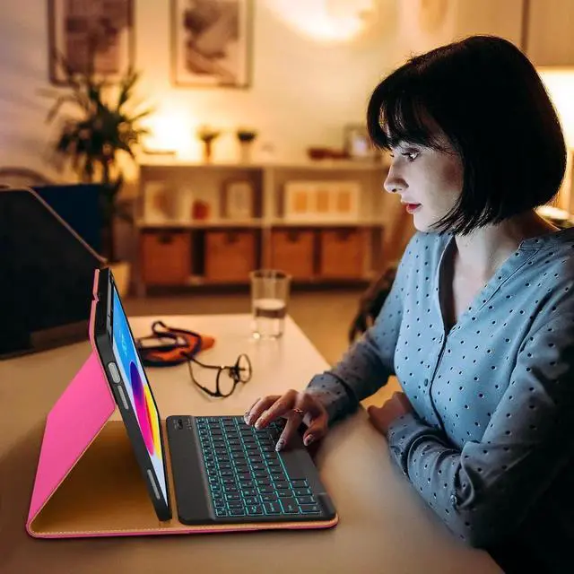 DTTO for iPad 11th (A16) / 10th Generation Case with Keyboard (2025/2022), 7 Colors Backlit Wireless Detachable Keyboard Leather Folio Cover with Pencil Holder & Pocket, Rose Red