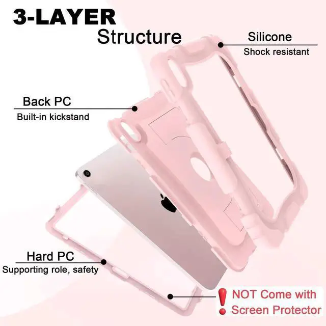 CCMAO Case for iPad 11 inch (A16) 2025/ iPad 10th Generation 2022 ( 10.9 inch) with Durable Kickstand, Pencil Holder, Hybrid Heavy Duty Shockproof Protective Case for iPad 11/10 Gen, Light Pink
