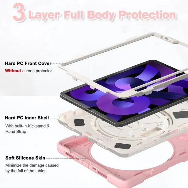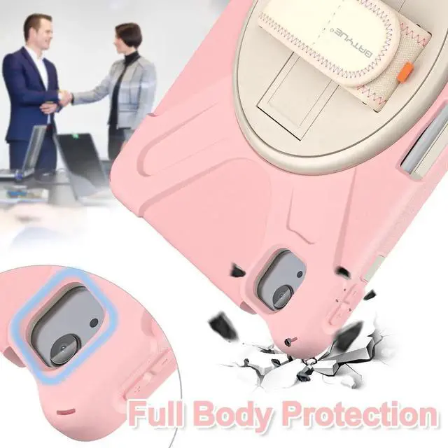 BATYUE Case for iPad Air 11-inch M3 (2025) / M2 (2024), iPad Air 5th/4th 10.9 inch(2022/2020), iPad Pro 11" 4th/3rd/2nd/1st Gen Case (2022/2021/2020/2018) with Pencil Holder+Shoulder Strap, Pink