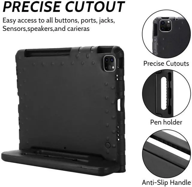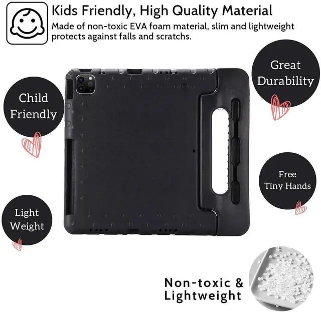Made from durable, lightweight, kid-safe and shock-resistant eva foam that it fully covers the back, sides and extend the surface of the iPad pro 11 inch 2024 screen, safely protects your ipad pro 5th generation 11" against bumps and drops.