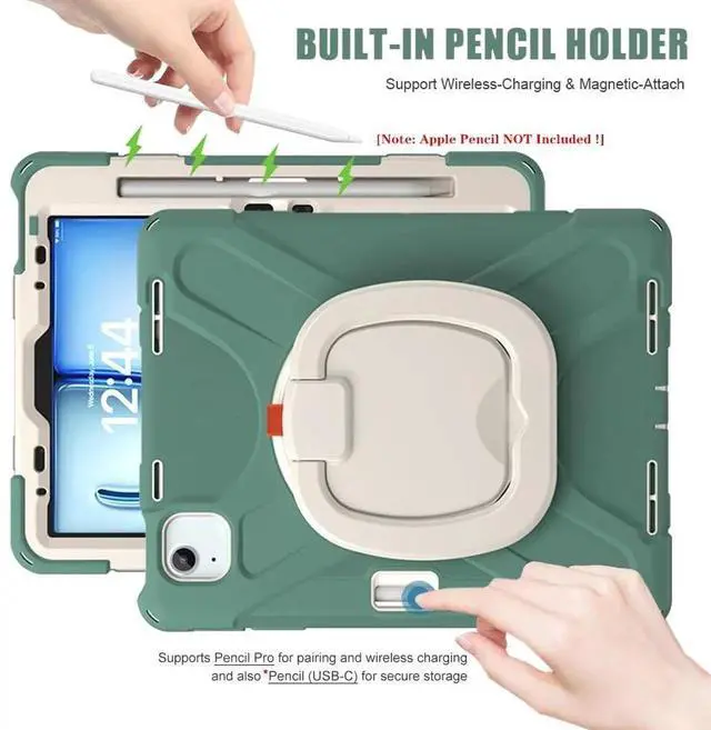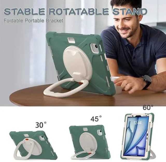 SCSVPN for iPad Air 11 Inch Case M3/M2 (7th/6th Gen., 2025/2024), iPad Air 5th/4th Gen 10.9 ''(2022/2020), iPad Pro 11''(2020-2018) Protection Cover with Pen Holder+Stand+Shoulder Strap, Emerald Green
