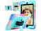 for iPad 9th/8th/7th Generation Case, iPad 10.2 Case 2021/2020/2019, with Cute Key Chain, Rugged Protective Case with 360°Rotating Stand & Shoulder Hand Strap & Pen Slot for 10.2 Inch (Rainbow Aqua)