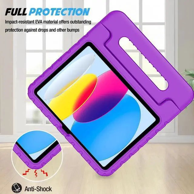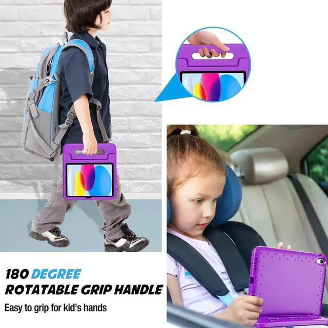 ProCase Kids Case for iPad A16 11th Generation 2025/iPad 10th Generation 2022 with Pencil Holder, iPad 11/10 Case Shockproof Lightweight Cover with Stand Convertible Handle for Children -Purple