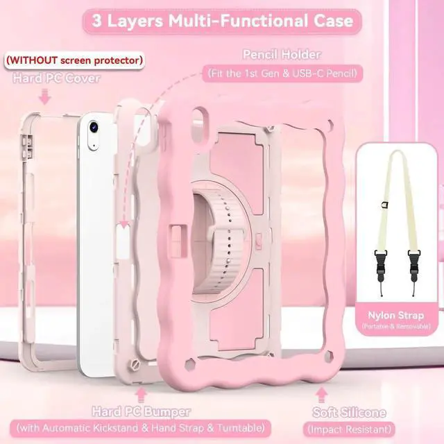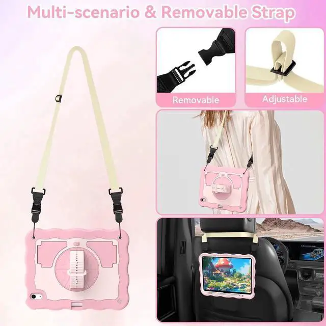 ![Alt view image 4 of 5 - ZoneFoker for iPad A16 11th Generation 2025 / 10th Gen Case 2022, for 11 Inch / 10.9 Inch iPad Case Heavy Duty Cover Shockproof with Pencil Holder [360° Rotate Strap] & Stand for Kids, Pink](https://c1.neweggimages.com/productimage/nb640/C2GMS25120906UYB59A.jpg)