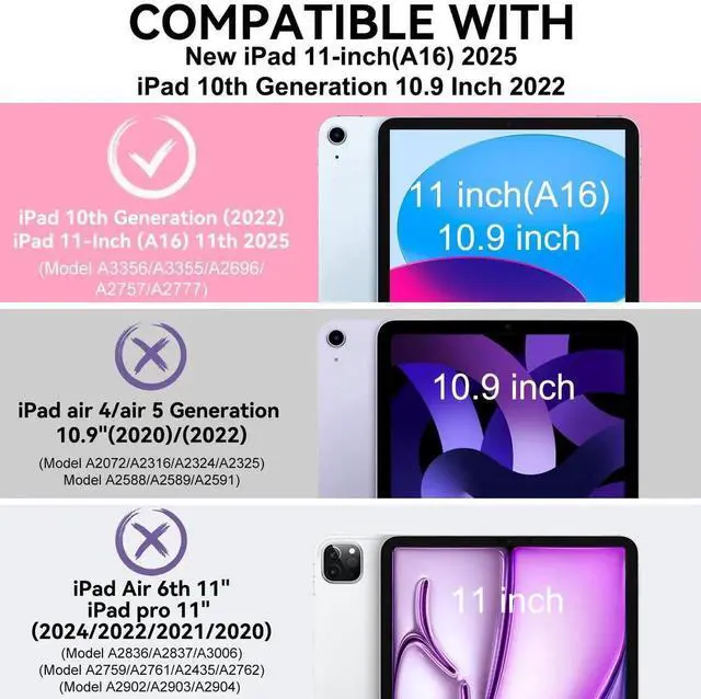 ![Main image of ZoneFoker for iPad A16 11th Generation 2025 / 10th Gen Case 2022, for 11 Inch / 10.9 Inch iPad Case Heavy Duty Cover Shockproof with Pencil Holder [360° Rotate Strap] & Stand for Kids, Pink](https://c1.neweggimages.com/productimage/nb640/C2GMS25120906UYB87F.jpg)