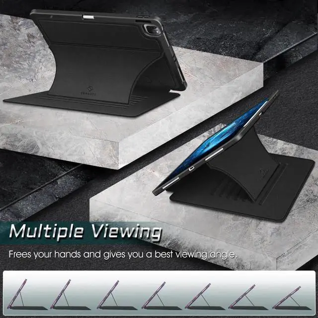 CaseBot Magnetic Case for iPad Pro 12.9 -inch 6th Generation 2022, Multiple Angle Shockproof Rugged Stand Case, Soft TPU Back Cover w/Pencil Holder, Also Fit iPad Pro 12.9" 5th/4th/3rd Gen, Black