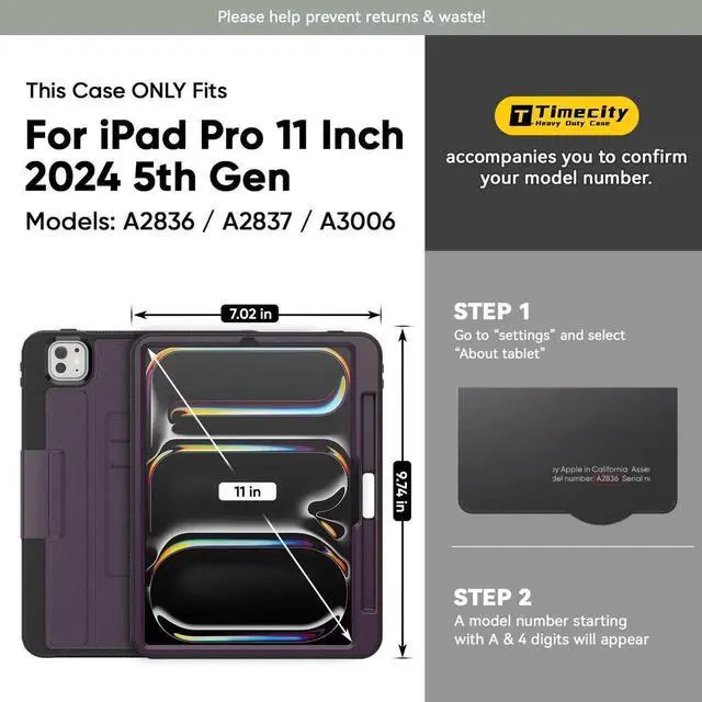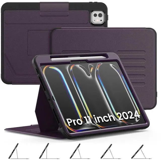 Timecity Case for iPad Pro 11 Inch 2024 (M4) 5th Genaration Case, Strong Magnetic with 5 Angle Stand, Auto Sleep/Wake, Upgrade PU Leather Cover for iPad Pro11 2024, Purple