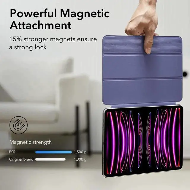 ESR for iPad Pro 12.9 6th/5th/4th Gen, iPad Air 13 Inch Case M3/M2 (2025/2024), Powerful Magnetic Attachment, Slim Trifold Stand Case, Supports Pencil Pro & Pencil (USB-C), Rebound Series, Lavender