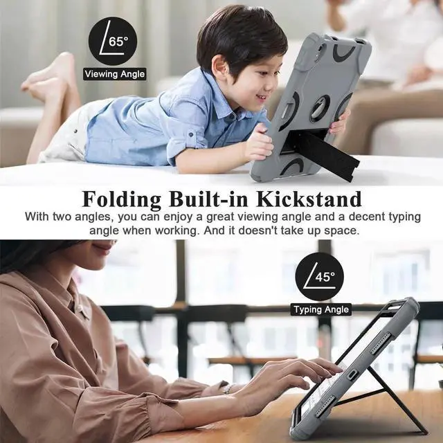 Grifobes for iPad 11-inch (A16) 2025 / 10th Generation Case 10.9 inch 2022, iPad 11th / 10th Case with Pencil Holder Heavy Duty Rugged Protective Cover with Kickstand for Girls Kids Dark Grey