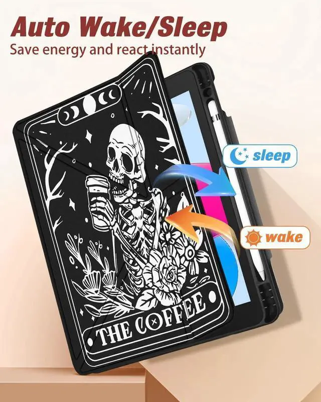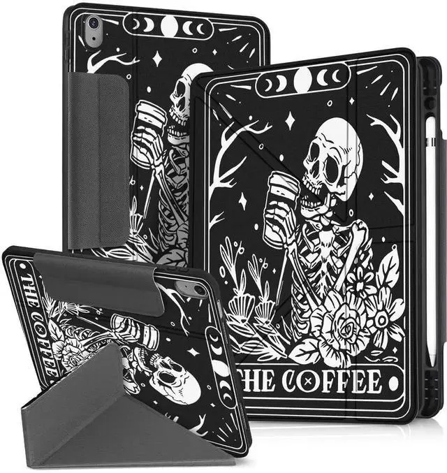 Miss Adola for iPad A16 Case/10th Generation Case - 10.9 Inch 2022 Tablet Cover with Pen Holder for Women Boys Girls Men Cute Cartoon Cool Funny Funda for iPad 11th 11 Inch 2025, Coffee Skull