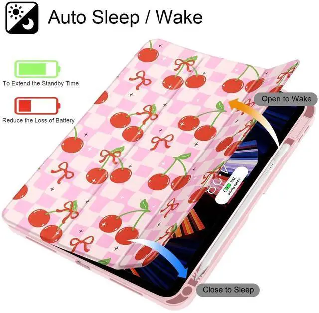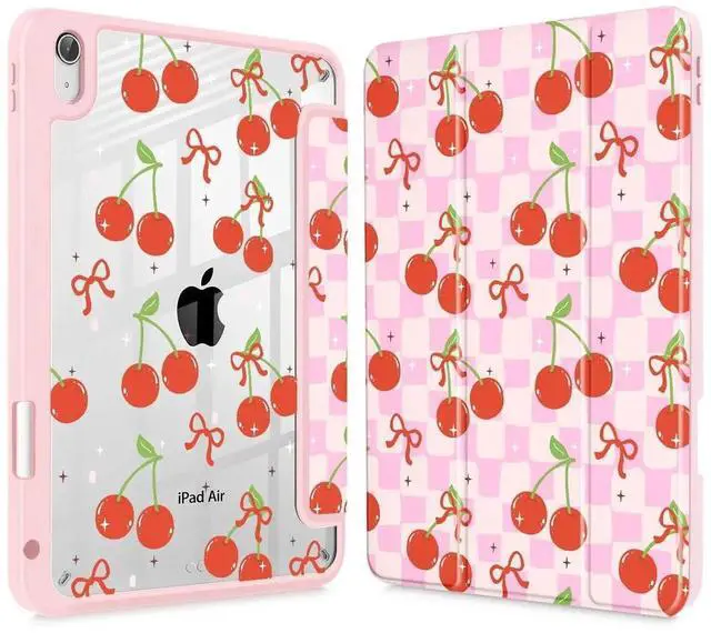 Lepeoac Case for iPad Air 11'' (M3 2025/M2 2024) 6th Gen/iPad Air 10.9 '' 2022 2020 Air 5th /4th Gen, Buit in Pencil Holder with Cover Clear Transparent Back Auto Wake/Sleep, Cherries and Bow
