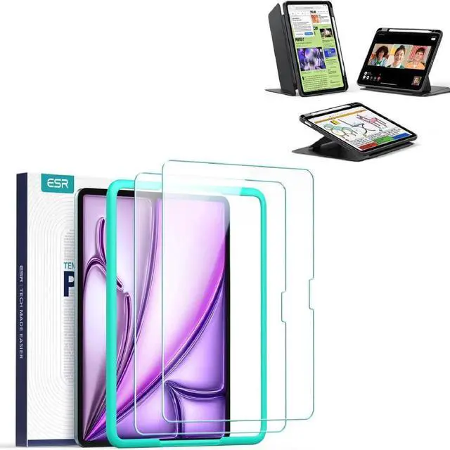 ESR 2 Pack Screen Protector for iPad Air 13+ Case, Vertical Stand Cover, Ultra-Stable Cover with Pencil Holder, Flip Series, Black