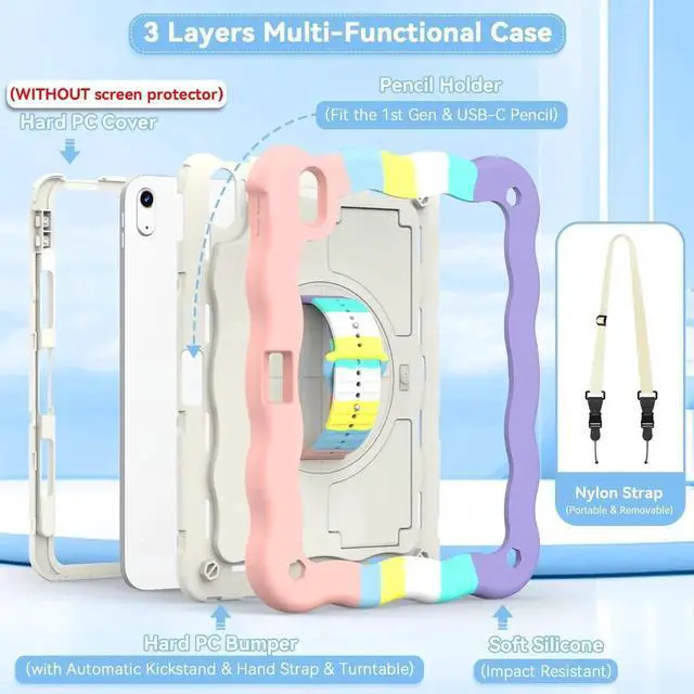 ![Alt view image 5 of 5 - ZoneFoker for iPad A16 11th Generation 2025 / 10th Gen Case 2022, for 11 Inch / 10.9 Inch iPad Case Heavy Duty Cover Shockproof with Pencil Holder [360° Rotate Strap] & Stand for Kids, Camouflage](https://c1.neweggimages.com/productimage/nb640/C2GMS2512090E4Z8Z3E.jpg)