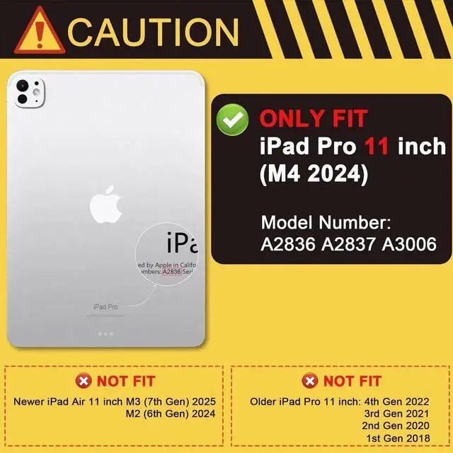 M4 Chip) Characteristic: 1. The case is made of premium PU exterior, microfiber lining and soft TPU back cover 2. Case automatically wakes your tablet when opened and puts it to sleep when closed 3. You can easily fold the cover into different positions to create a stand for reading, viewing, typing, or making FaceTime calls 4. Built-in pencil holder, grab your tablet pencil effortlessly whenever you want, easily carry your tablet pencil with your device 5. Easy to Installation and remove 6. Convenient to use all the controls and features