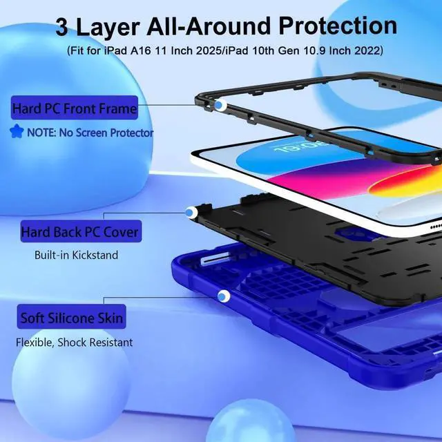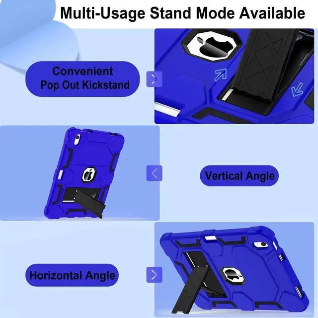 CCMAO Case for iPad (A16) 11th/10th Generation(2025/2022), iPad 10th Case with Kickstand & Pencil Holder, Heavy Duty Shockproof Hybrid Three Layer Protective Cover for Girls Women, Dark Blue+Black