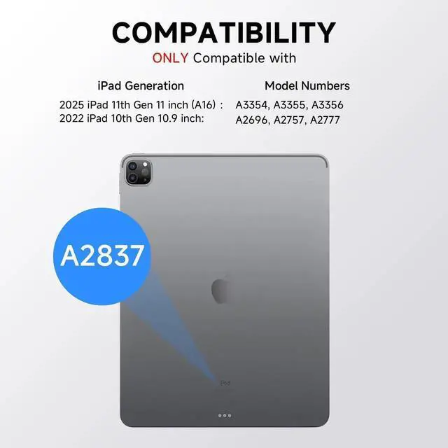 Tiaota Keyboard Case for iPad 11-inch (A16, 2025) and iPad 10th Gen 10.9 -inch with Multi-Touch Trackpad, 360° Rotating Kickstand, Portrait & Raised Modes, Detachable Cover, 7-Color Backlight White