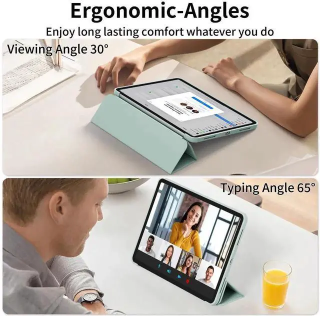 Tri-fold Stand: The magnetic tri-fold cover can be easily folded into a stable stand, supporting 30° or 65° and horizontal and vertical positions, ensuring a comfortable angle for watching your favorite shows or taking notes with Pencil. Avoid joint pain, free your hands, and enj