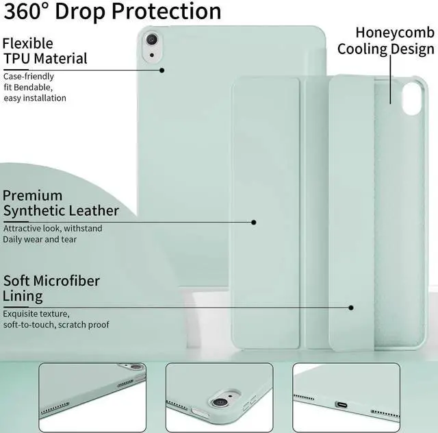 Full Protection: High-quality leather hard front cover with soft TPU back cover and soft microfiber interior, slim and lightweight design and exquisite craftsmanship, silky touch, bring 360° all-round protection to your iPad