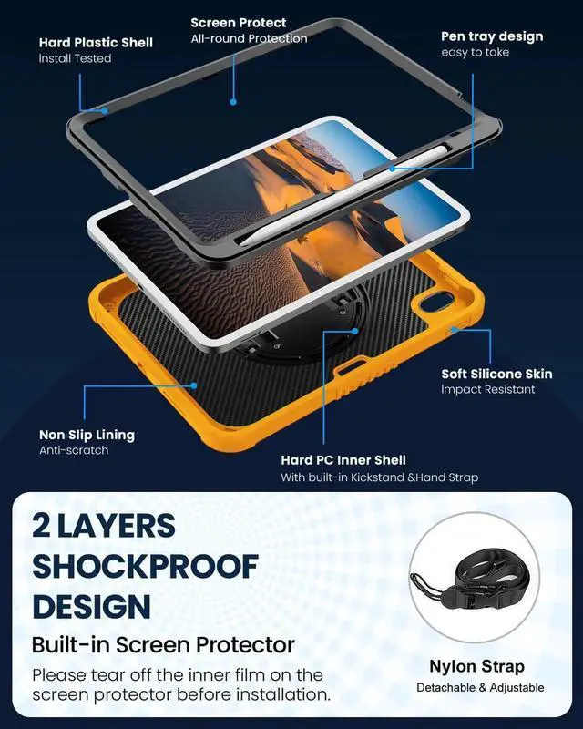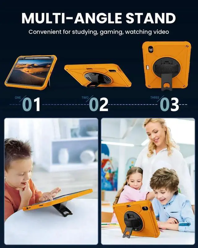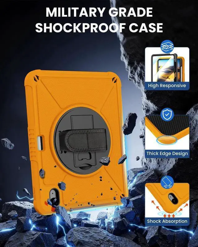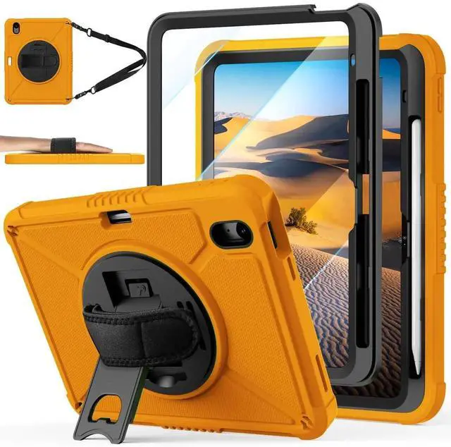 ZtotopCases for iPad (A16) 11th/10th Generation 11''/ 10.9 '' with Screen Protector, Pen Holder, Handle Shoulder Strap, 360 Rotating Stand Rugged Protective Case for iPad 11th Gen 2025(A3354/5), Orange