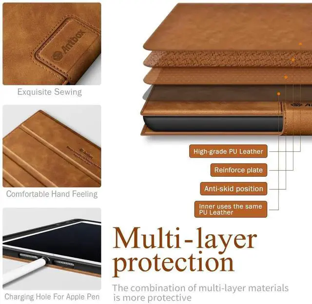 Antbox Case for iPad 9th Generation (2021) iPad 8th/7th Generation with Pencil Holder Auto Sleep/Wake Function PU Leather Smart Cover for iPad 10.2 '' (Brown)