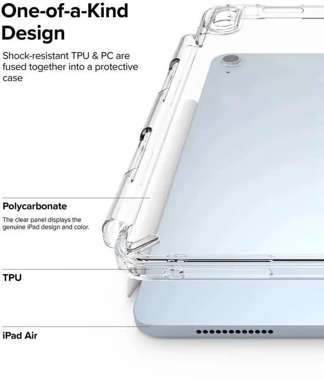Ringke Fusion Compatible with iPad Air 11 Inch Case (M3 2025 & M2 2024) Over Charge Prevention Cover with Pencil Holder Designed for iPad Air 7th, 6th, 5th, 4th Generation - Clear