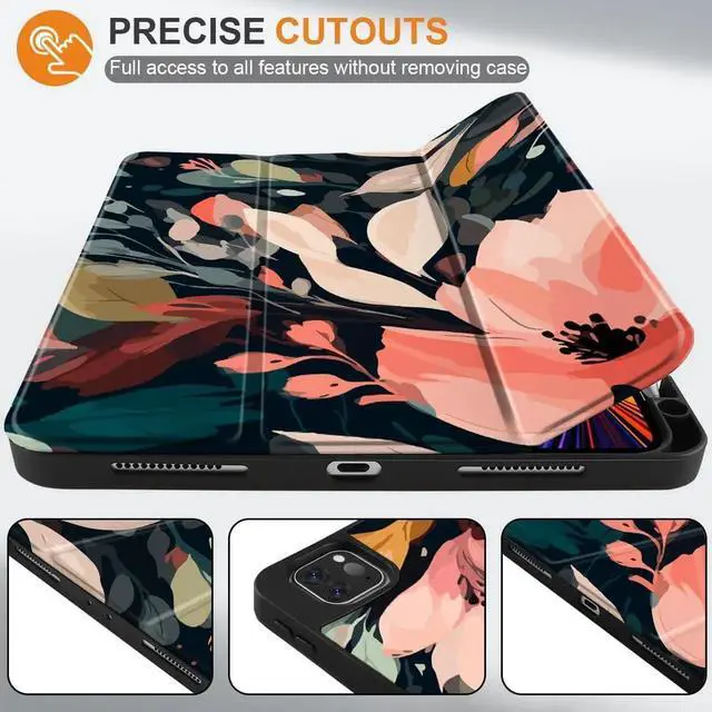 DONGKE Case for 2022/2021/2020/2018 iPad Pro 11 inch Gen 4/3/2/1 - Slim Protective Case - Built in Pencil Holder Support Charging - Trifold Stand & Sleep/Wake Cover - Painted Florals