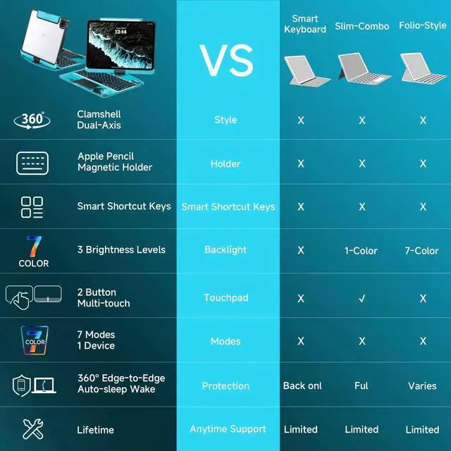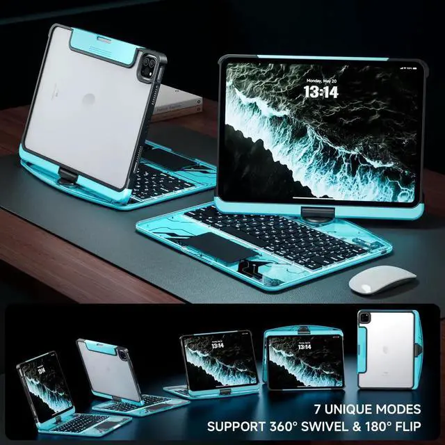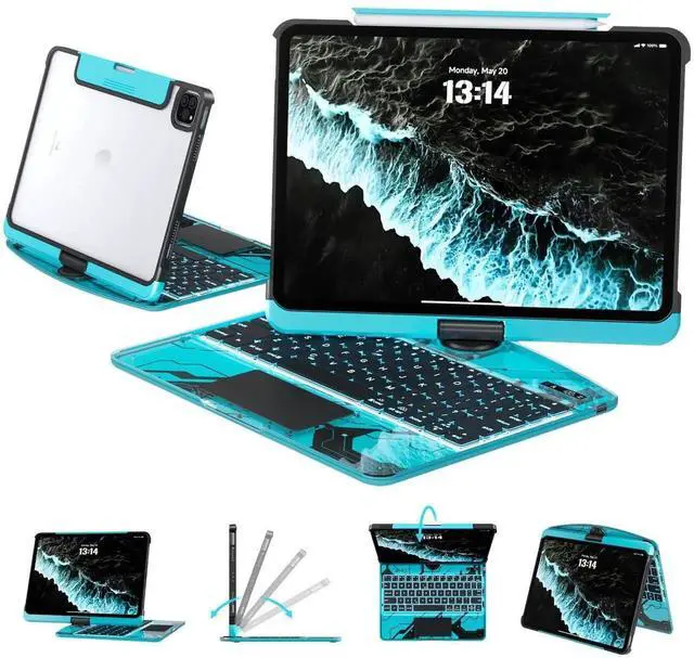 Tiaota Transparent Case with Keyboard for iPad 9th (7th, 8th, and 9th Gen) 10.2 Inch, with 7-Color Backlit Wireless Keyboard, 360°Rotatable Protective Case Multi-Touch Trackpad, with Pencil Holder, Blue
