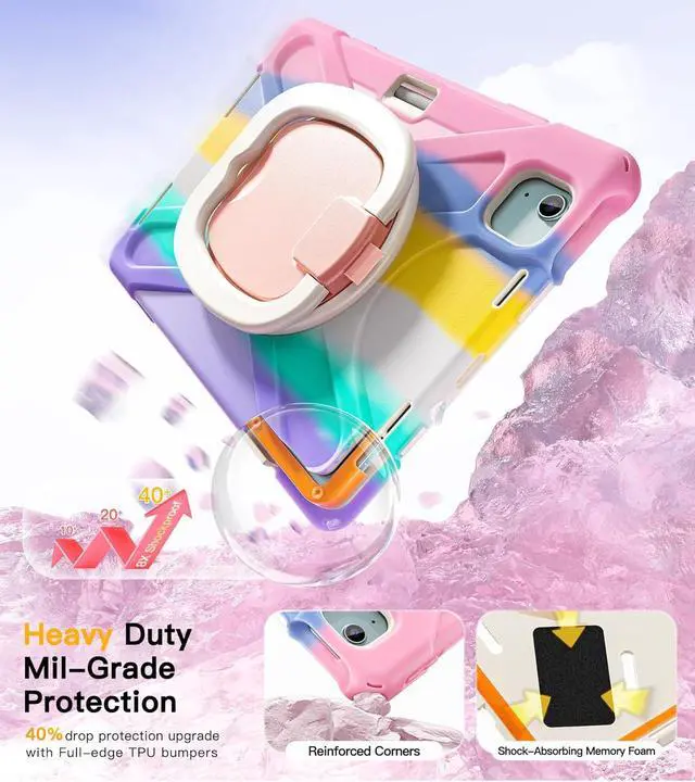 Full-Body Rugged Protection & Screen Protector: Shockproof silicone case with built-in screen protector defends iPad Air 11 M3 (7th Gen 2025)/ M2 (6th Gen 2024) and 10.9" models against drops, scratches, and daily use. Reinforced corners absorb impacts for ultimate device safety