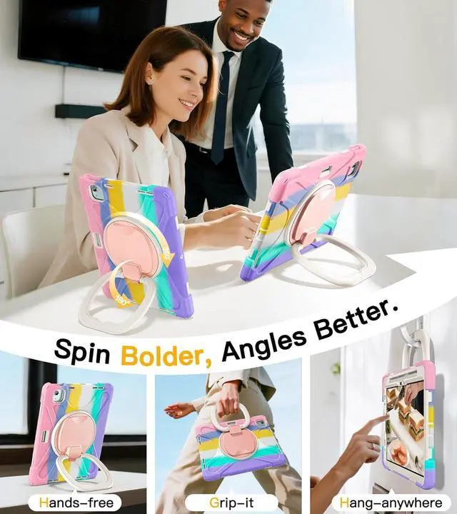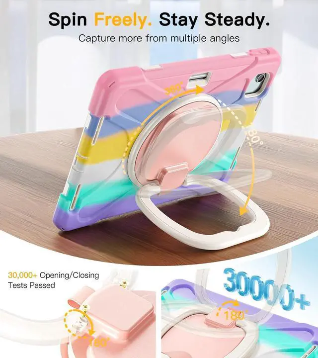 360° Rotating Handle & Adjustable Kickstand: Multi-functional rotating grip seamlessly converts from 180° foldable handle to 360° swivel stand. Perfect for hands-free viewing in portrait/landscape mode during work, travel, or home use