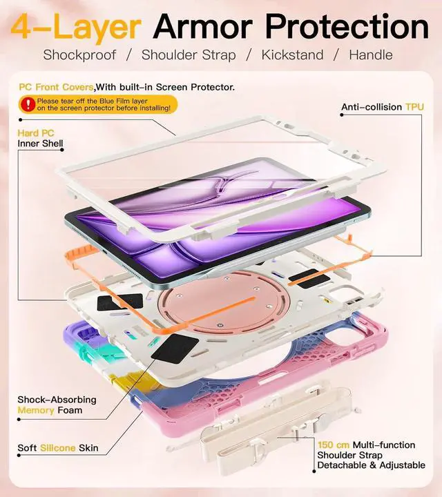 Precise Cut-outs: Exclusive design compatible with iPad Air 11 M3 Case (2025), iPad Air 11 M2 Case (2024), iPad Air 10.9 5th/4th Gen case, and iPad Pro 11 inch case 4th/3rd/2nd/1st Gen. Easy access to all ports, buttons, and cameras without removing the case