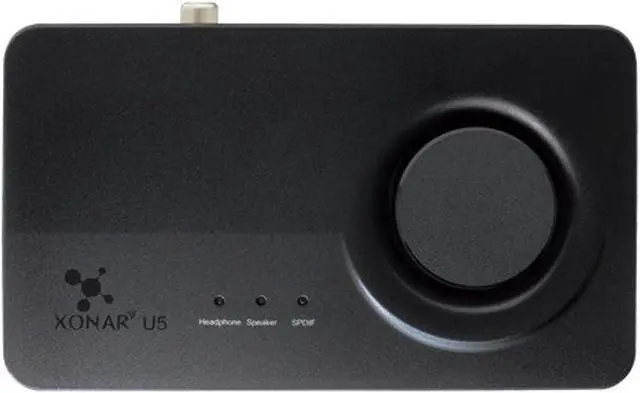 Xonar U5 is a compact 5.1-channel USB sound card designed to provide PC gamers with high quality audio for games, music and movies. It follows in the footsteps of the award-winning Xonar U7 - providing you with strong and clear sound via headphones, and producing more impactful and detailed audio than onboard hardware. The Xonar U5 has no standalone power supply and connects to your PC via USB, allowing you to instantly plug-in without having to open the PC