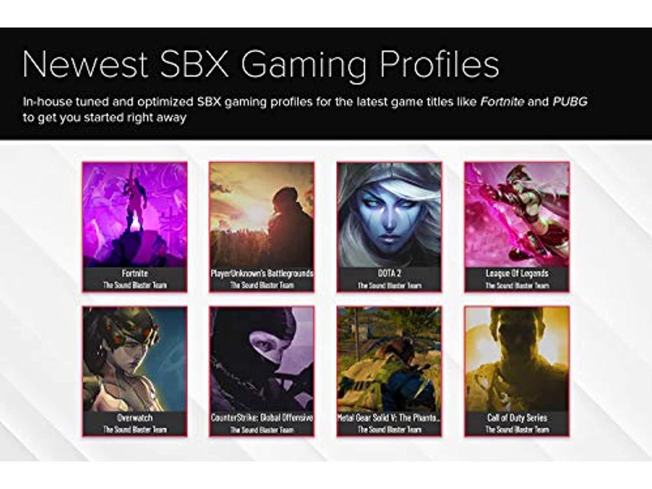 SBX GAMING EQ PROFILES – Emerge as the last man standing with our updated SBX Gaming Profiles for hot titles such as Apex Legends, Fortnite, Overwatch, PUBG, and more. In-house tuned and optimized