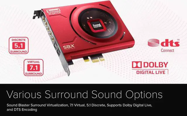 Other Features Various Surround Delivery On top of our raved-about Sound Blaster Surround Virtualization technology, Sound Blaster Z SE also supports up to 7.1 virtual on headphones and speakers alongside discrete 5.1 for speakers, as well as Dolby Digital Live, and DTS Encoding.
