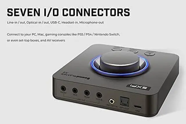 CONNECT WITH EVERYTHING - With a newly added optical-in port it is now much easier to connect multiple audio devices from external microphones and headsets to platforms like your PC Mac gaming consoles and even your multi-channel speaker systems. Just power up the Sound Blaster X4 via the USB-C port and enjoy high-quality audio with everything. The Sound Blaster X4 is also a headphone amplifier that is capable of driving studio-grade headphones of up to 600