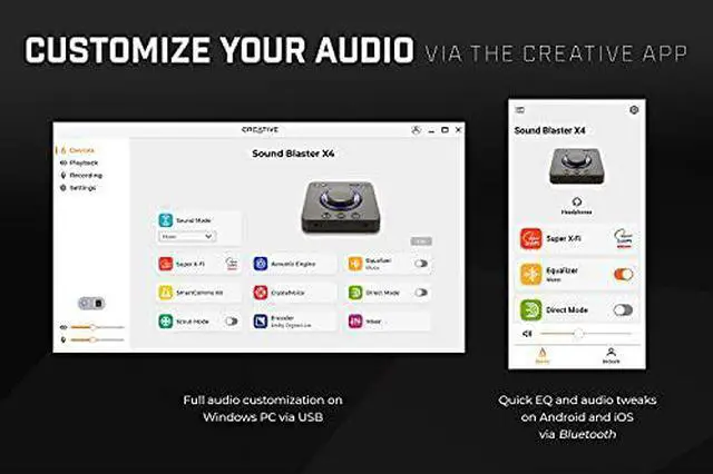Creative Sound Blaster X4 Hi-Res 24bit/192kHz External USB DAC and Amp Sound Card, Super X-Fi, Multi-Channel, 7.1 Discrete Surround, Optical-in, Optical-out, Line-in, Mic-in, Headset-in for PC and Mac
