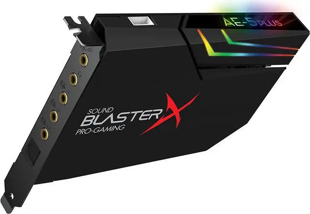 - RGB YOUR GAMING RIG The AE-5 Plus has customizable RGB LEDs on its body, and also features an included RGB LED strip. Enjoy a symphony of lights and sound with 16.8 million colors in different patterns to choose from, all via the Sound Blaster Command software for PC