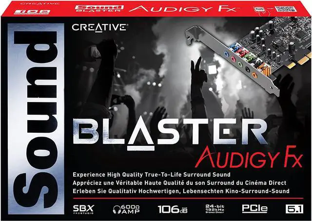 Sound Blaster Audigy Fx is the perfect upgrade from basic motherboard audio to legendary Sound Blaster audio. Powered by SBX Pro Studio technology, it provides high-quality 5.1 cinematic sound for your movies, music and games. It comes with the Sound Blaster Audigy Fx Control Panel, which puts you in full control of your SBX Pro Studio settings.