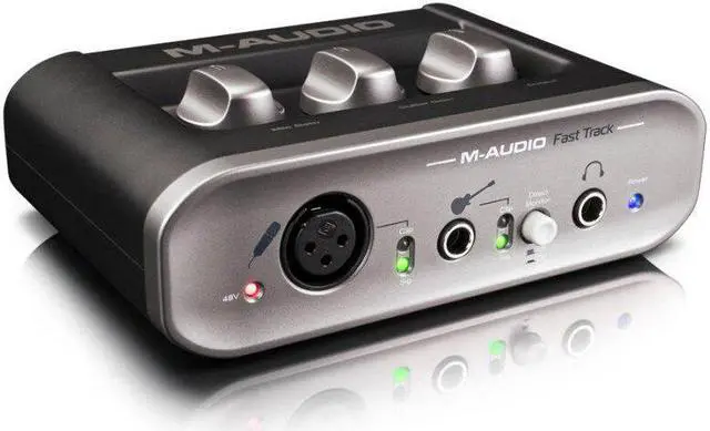 Turn your computer into a powerful music production studio with the M-Audio Fast Track MKII USB audio interface. Featuring a simple plug-and-play USB connection, Fast Track MKII is an easy way to record guitar, vocals, and more with your PC or Mac. Simply plug in your instruments and you're ready to rock. Fast Track even offers phantom power so you can use professional-quality studio condenser microphones like the M-Audio Nova.