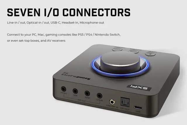 CONNECT WITH EVERYTHING - With a newly added optical-in port, it is now much easier to connect multiple audio devices, from external microphones and headsets, to platforms like your PC, Mac, gaming consoles, and even your multi-channel speaker systems. Just power up the Sound Blaster X4 via the USB-C port, and enjoy high-quality audio with everything. The Sound Blaster X4 is also a headphone amplifier that is capable of driving studio-grade headphones of up to 600